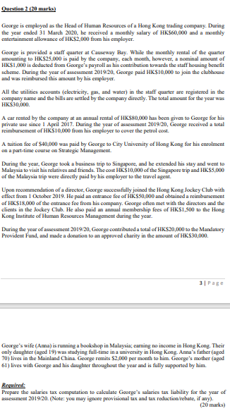 Question 2 20 Marks George Is Employed As The Head Chegg Com